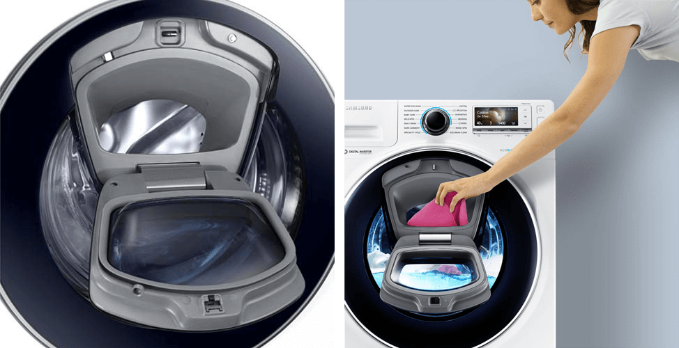 در ماشین های لباسشویی سامسونگ از قابلیت ادواش Addwash استفاده می شود. اما ادواش چیست؟ در بعضی از موارد کاربر فراموش می کند که لباس ها را در ماشین لباسشویی قرار دهد و معمولا چند آیتم را فراموش می کند و در آن لحظه ماشین لباسشویی سامسونگ پروسه شستشو را انجام می دهد حالا راهکار چیست. نه می توان بعدا تعداد کم لباس ها را با آن شست و نه می توان منتظر ماند تا فرایند بعدی، چون لباس ها بدون استفاده خواهند بود. در ماشین های لباسشویی سامسونگ از دربی جدا می توان لباس های فراموش شده را به ماشین لباسشویی اضافه کرد تا همراه بقیه لباس ها شسته شود. ماشین های لباسشویی ال جی هم این ویژگی را دارند اما با این تفاوت که دربی جدا برای آن اختصاص داده نشده و از همان درب اصلی و با مکث ماشین لباسشویی به مدت 3 ثانیه انجام می شود.