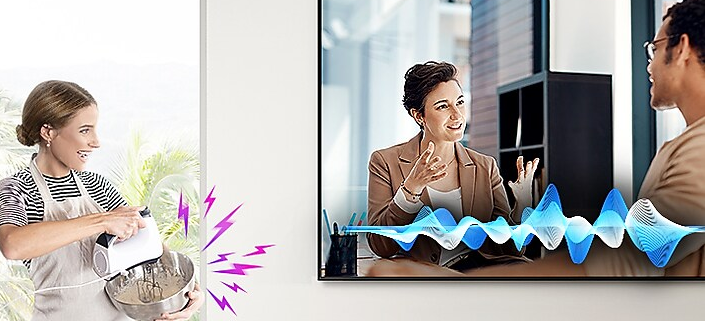 این ویژگی ساختار نرم افزاری دارد و بسیار کاربردی است. در تلویزیون های سامسونگ از یک میکروفون برای جذب و گرفتن صدای محیط وجود دارد. این میکروفون صدای فضا را به نرم افزار اتخاذ شده منتقل می کند و سپس متناسب با داده های دریافت شده از فضا میزان صدای تلویزیون تغییر خواهد کرد این میکروفون صدارا از 4 تا 100 کیلوهرتز تشخیص داده و به نرم افزار می رساند. در نتیجه آن زمانی که صدا در فضا زیاد است صدای دیالوگ در تلویزیون افزایش می یابد.