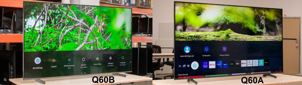 تلویزیون Q60B QLED سامسونگ بسیار شبیه به مدل قبلی خود یعنی Q60A QLED سامسونگ است. Q60B در چند زمینه مانند کنتراست و یکنواختی مشکی کمی بهتر است، بنابراین برای مشاهده محتوا، اتاق تاریک بهتر است و دقت رنگ را بهبود بخشیده است. نسخه به روز شده تایزن در Q60B دارای چند ویژگی دیگر مانند پشتیبانی از دستیار صوتی گوگل، بیکسبی و دستیار صوتی الکسا است. از طرف دیگر Q60A زمان پاسخگویی سریع تری دارد.