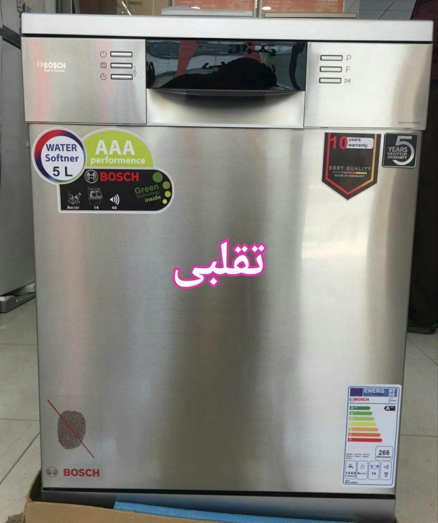 در اینجا شما یک ظرفشویی الحافظ را مشاهده می کنید که با برچسب و لوگو ی ساختگی به ظرفشویی بوش تبدیل شده است. برند بوش از اعتبار زیادی برخوردار است و خواهان زیادی دارد به همین دلیل است که افرادی سودجو از همین آوازه و شهرت بوش سوء استفاده کرده و محصولات کم کیفیت و تقلبی را به اسم و برند بوش می فروشند. در قسمت بالایی سمت چپ برند و لوگوی الحافظ را محو کرده و برند و لوگوی بوش را چسبانده و حک کرده اند از طرف دیگر از گزینه هایی که خریدار بسیار به آن ها توجه می کند استفاده شده است مانند برچسب انرژی AAA و یا گارنتی 10 ساله و… البته اینجا متقلبان ناشیانه عمل کرده و برای موتور آن گارنتی 5 ساله اتخاذ کرده و برچسب زده اند چون شرکت سازنده ای مانند بوش با این همه اعتبار دو گارانتی را برای محصول خود در نظر نمی گیرد.
