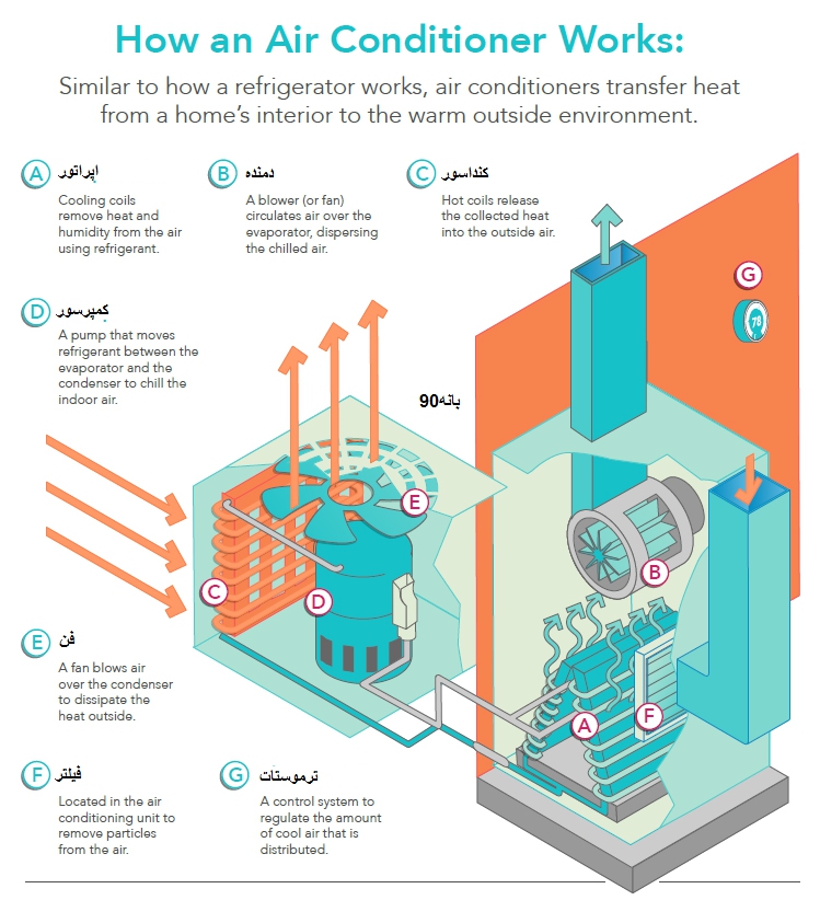 اجزاء مختلف کولر گازی و نحوه کارکرد آنها