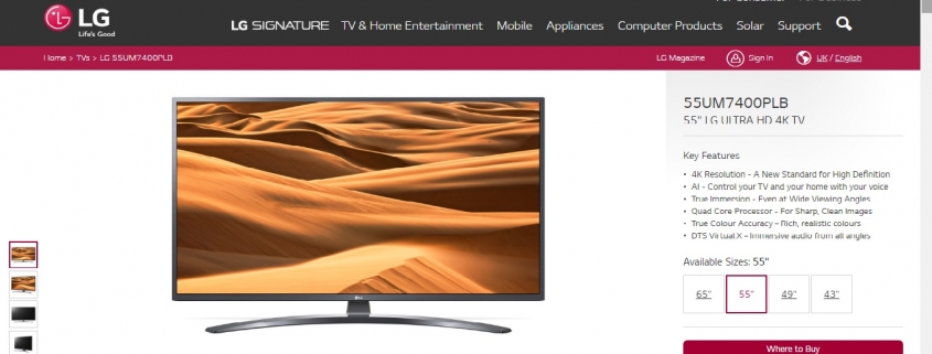تلویزیون های ال جی دارای امکانات و ویژگی هایی هستند که اغلب در وب سایت شرکت سازنده آورده می شوند. این امکانات و ویژگی ها مشخصه اصلی تلویزیون هستند، به گونه ای که تلویزیون را معرفی می کنند. هر شرکت تولیدی وب سایت مخصوص به خود را دارد و به شیوه خاص ویژگی های تلویزیون را بیان می کند. در این نوشته ما قصد داریم امکانات و ویژگی ها تلویزیون های ال جی را متناسب با آنچه بر روی وب سایت آن شرکت معرفی می شود بررسی کنیم: