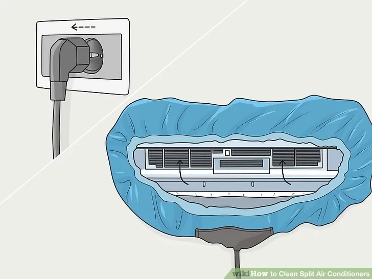 پس از اینکه دستگاه را از منبع برق جدا کردید، یک کیسه زباله بزرگ یا یک کیسه تهویه مطبوع در زیر واحد داخلی AC قرار دهید تا تمام کثیفی ها و چکه های ریخته شده را بگیرد.
