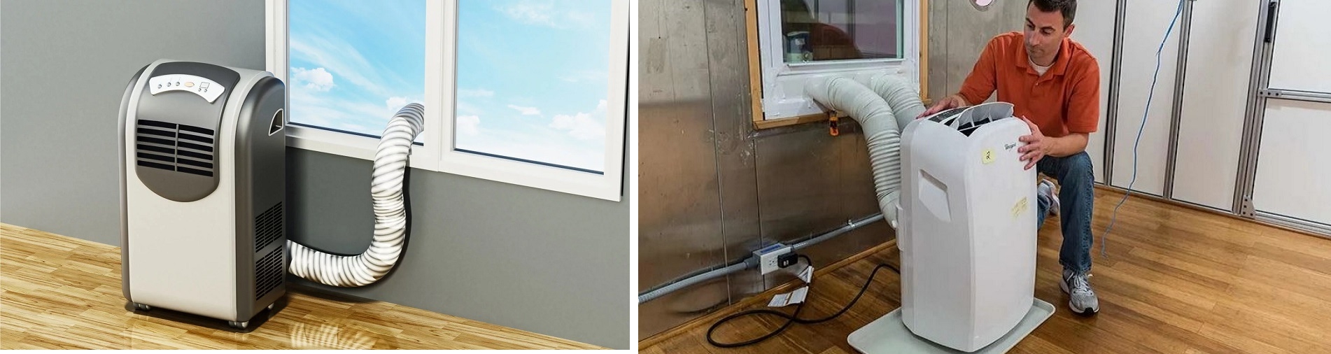 تهویه مطبوع پرتابل یک واحد مستقل است که می توانید آن را در هر جایی از خانه خود که پنجره یا درچه ای کوچک به بیرون دارد را می توان قرار بدهید. برخلاف سایر کولرهای گازی، کلیه بخشهای کولرگازی قابل حمل به طور کامل در داخل خانه شما باقی می مانند. کولرگازی قابل حمل با یک شیلنگ و یک کیت پنجره ارائه می شود. این کیت بیشتر پنجره شما را میبندد در حالی که فضایی کوچکی برای وارد کردن شلنگ باقی میگذارد و اجازه میدهد گرما و رطوبت به بیرون تخلیه شود.