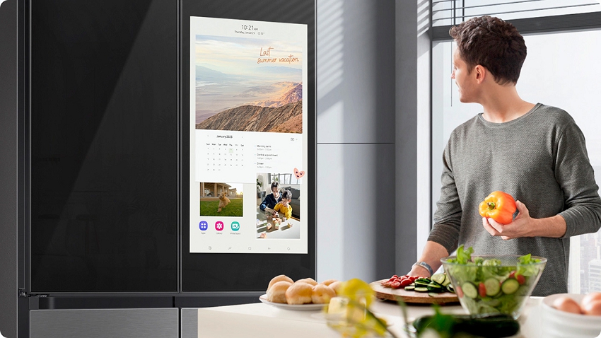 یخچال به شما این امکان را می دهد که تصاویر و ویدیوها را از صفحه گوشی هوشمند خود به سادگی با ضربه زدن روی درب یخچال،  مشاهده کنید، قابلیت‌های متنوع دیگر Family Hub یخچال‌های هوشمند سامسونگ به شما اجازه می‌دهد که از سرگرمی‌های بی‌پایان در آشپزخانه خود لذت ببرید. با استفاده از نمایشگر روی یخچال قادرید آهنگ مورد علاقه خود را از Spotify پخش کنید یا به بیش از هزار ایستگاه رادیویی، اخبار، پادکست و نمایش‌های کمدی در TuneIn دسترسی داشته باشید.