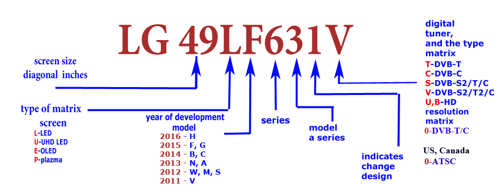 روش نام گذاری مدل های تلویزیون های ال جی به سه صورت کلی زیر است: