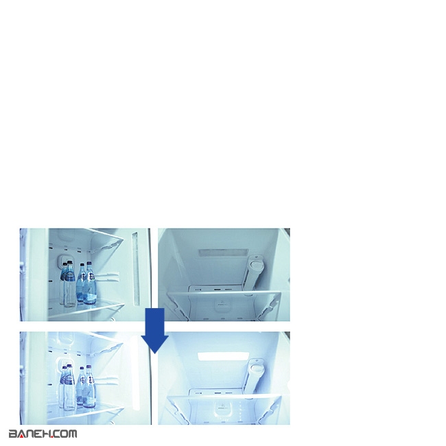 با نگاهی به قسمت یخچال شگفت زده خواهید شد؛ بدون شک انتظار این حجم گسترده از ذخیره سازی را در این ابعاد از دستگاه نداشتید! ظرفیت یخچال 455 لیتر است که به 4 طبقه، دو کشو شفاف و بزرگ و 6 قفسه روی درب تقسیم بندی شده است؛ مزیت این طبقه های شیشه ای در قابلیت تغییر ارتفاع بینشان است یعنی شما می توانید جهت باز کردن جای بزرگتر برای قابلمه و پارچ آب، فاصله یک طبقه با طبقه بالایی اش را بیشتر کنید؛ در همین بخش داخلی یخچال قفسه های موجود روی درب امکان جایگذاری بطری های بزرگ و کوچک را به شما می دهند.