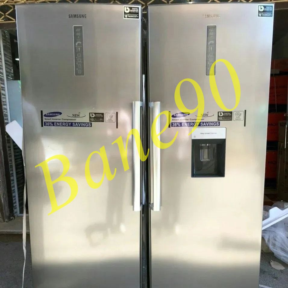 یخچال دوقلوی سامسونگ دارای بدنه ای مسطح و جمع وجور بوده همچنین دارای دستگیره های خارجی می باشد. وقتی از روبه رو به آن نگاه می کنید، انگار یخچال به دو قسمت عمودی تقسیم شده است. قسمت سمت چپ آن فریزر و قسمت سمت راست آن یخچال می باشد. بخش سمت راستی نیز در راستای افقی، به دو بخش تقسیم شده است که بخش یخچال (سمت راست) دارای آبریز می باشد. به عبارتی دیگر، این یخچال دارای قابلیت WATER DISPENSER است و با استفاده از آن آب سرد همیشه در دسترس خواهد بود. روی درب فریزر یا به عبارتی بخش سمت چپی یخچال، نمایشگری منسجم و خوش ساخت واقع شده است. طراحی نوآورانه و شیک این یخچال فریزر در کنار نمایشگر آن زیبایی یخچال مورد بحث را چندین برابر افزایش داده است.