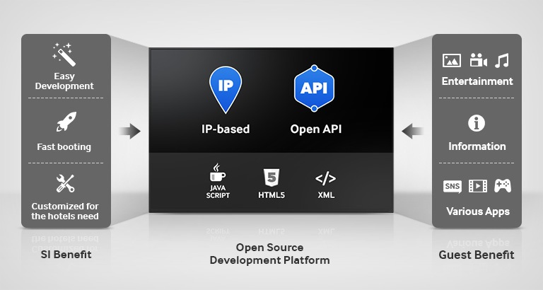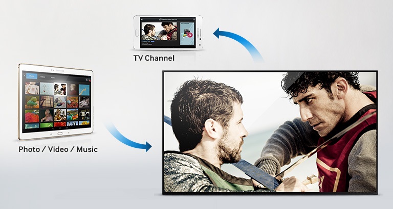 این نمایشگرها با فعالیت به عنوان یک مرکز سرگرمی چند دستگاهه با ارائه ویژگی های پیشرفته در اتاق های مهمان، تجربه مهمان را متحول می کنند. ویژگی Smart View TV به تلفن همراه به مشتریان امکان می دهد کانال های تلویزیونی را در طیف گسترده ای از دستگاه های تلفن همراه از جمله اشتراک مستقیم صفحه نمایش همه کانال ها با استفاده از تبلت Samsung GALAXY و مشاهده کانال های پخش مستقیم (فقط) با استفاده از iPhone مشاهده کنند. Mobile-to-TV با جریان دادن محتوا به تلویزیون از طریق رابط بصری دستگاه های تلفن همراه، عکس این عمل را انجام می دهد. عملکرد Mirroring Screen به مشتریان این امکان را می دهد تا صفحه تلفن همراه را از جمله پیکربندی نمایشگر در تلویزیون به اشتراک بگذارند تا بدون محدودیت محتوا، دقیقاً به همان روش تلفن همراه در تلویزیون نمایش داده شود. Digital Living Network Alliance (DLNA) به مهمان ها این امکان را می دهد تا محتوای شخصی خود مانند فیلم، موسیقی و عکس را از طریق اتصال بی سیم در تلویزیون اتاق خود پخش کنند.
