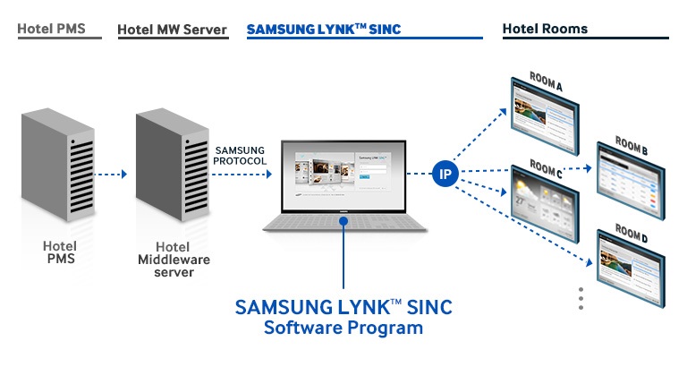 موسسات می توانند با LYNK SINC 3.0 همان سرگرمی تعاملی را که در دستگاه های شخصی آنها در خانه ارائه می شود، در صفحه نمایش اتاق مهمان به مشتریان خود ارائه دهند. تجربه مشتری از طریق دسترسی به خدمات و اطلاعاتی که به علاقه مشتری بستگی دارد و می تواند از طریق ابزارک های قابل تنظیم انتخاب شود، افزایش می یابد. علاوه بر این، هتل ها می توانند اطلاعات به روز پرواز را ارائه دهند، به این ترتیب مهمانان می توانند بر اساس برنامه پرواز، برنامه عزیمت خود را برنامه ریزی کنند. پیام های شخصی را می توان در زمان واقعی برای مشتریان نیز ارسال کرد. Samsung Smart Hub دروازه ای برای انواع برنامه های تحت وب فراهم می کند و به مشتریان این امکان را می دهد تا به راحتی از طریق زیرساخت IP هتل به شبکه های اجتماعی دسترسی پیدا کنند تا متناسب با نیازهای شخصی خود از محتوای تلویزیونی برتر برخوردار شوند. Smart Hub همچنین به مشتریان امکان می دهد از برنامه های اینترنتی به همان روشی که در دستگاه های دیگر استفاده می کنند، استفاده کنند و تجربه ای شبیه به خانه را فراهم کنند.