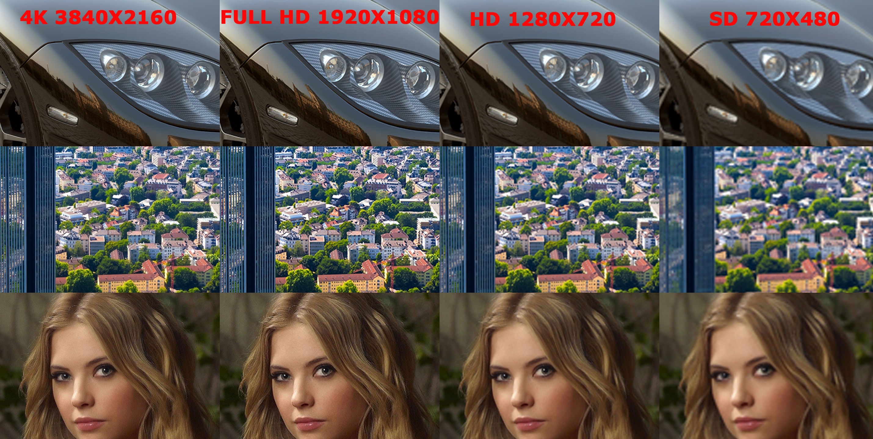 از آنجا که هر چه تعداد پیکسل های موجود در صفحه نمایش بیشتر باشد، جزئیات بیشتری امکان نمایش را بر روی صفحه نمایش خواهند داشت. شرکت های سازنده تلویزیون تصمیم گرفتند تا در همان اندازه های صفحه نمایش رزولوشن تصویر و یا تعداد پیکسل های درگیر در نمایش تصویر را بالا ببرند. بنابراین کیفیت ها و رزولوشن های تصویر در تلویزیون یکی پس از دیگر نقش آفرینی کردند. شاید این سوال پیش بیاید که چگونه در یک صفحه نمایش مثلا 49 اینچ Full HD با رزولوشن و تعداد پیکسل 1920*1080 می توان رزولوشن و تعداد پیکسل 2160*3840 را جای داد؟ جواب این سوال خیلی آسان است با کوچکتر شدن اندازه پیکسل ها همچین فرایندی ممکن است.بنابراین در تلویزیون 4K تعدا پیکسل های بیشتر و در حدود 4 برابر تعداد پیکسل ها در تلویزیون Full HD است و اندازه پیکسل ها در تلویزیون 4K نسبت به اندازه آنها در تلویزیون Full HD تا چهار برابر کوچک تر است. درحالحاضر رزولوشن 2160 × 3540 که نشاندهندهی کیفیتتصویر 4K است، بهترین و واضحترین تصویر در تلویزیونهای خانگی به حساب میآید. البته برای بهرهمندی این کیفیتتصویر باید به محتوای تصویری 4K دسترسی داشته باشید. در این صورت پراکندگی 2160×3840 پیکسل در صفحهنمایشی 55 اینچی، یکی از واضحترین تصاویری را که تا به امروز دیدهاید، خلق میکند.