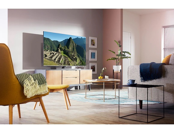 یکی از قابلیت های جدیدی که در تلویزیون های سامسونگ با آن رو به رو هستیم، وجود حالت محیط یا Ambient میباشد. تلویزیون های جدید کوانتوم ال ای دی سامسونگ را که به دیوار وصل نموده اید می توانید مخفی کنید یا این که مانند یک تابلوی زیبا بر روی دیوار به زیبا تر کردن دکوراسیون خانه تان کمک کنند. حالت محیط نمای همیشگی و نه چندان جالب صفحه نمایش مشکی در حالت خاموش بودن تلویزیون را برطرف می کند و باعث می شود به جای آن یک تابلوی زیبا داشته باشید، در ضمن باید بگوییم تلویزیون 55Q75T در حالت Ambient مصرف انرژی بسیار کمی هم دارد، با این حالت میتواند با نمایش دادن یک عکس از دیوار پشت تلویزیون، مخفی شود. حتی می توانید یک موسیقی هم پخش کنید تا فضا را آرام و دلچسب کنید. مورد دیگر اینکه حتی می توانید تصاویر زیبا یا عکس های خودتان را هم مانند یک قاب عکس دیجیتالی با این تلویزیون 55 اینچ QLED به نمایش بگذارید و اطلاعات مفیدی مانند ساعت، تقویم و دمای هوای محیط را بر روی نمایشگر تلویزیون داشته باشید.