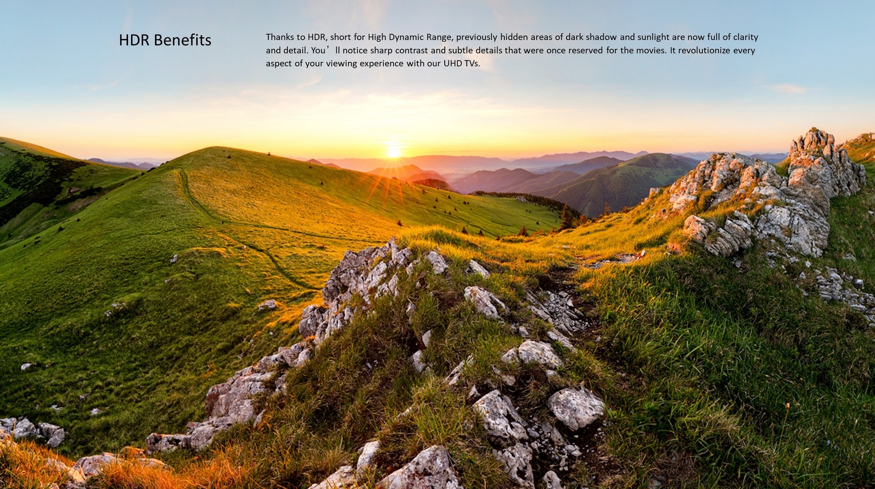 از فناوری های پیشرفته ای که موجب خلق تصاویر طبیعی می شود، فناوری HLG و HDR می باشد. این فناوریها کوچکترین رنگ را به صورت دقیق منعکس می کند تا رنگ های واضح تر، غنی تر و واقع گرایانه تری ارائه شود. همچنین در تلویزیون هایی با این قابلیتها، مشکل مخلوط شدن رنگها به هنگام ارائه تصاویر رنگی به وجود نمیآید. فناوری های HLG و HDR باعث میشوند تا رنگها با کوچکترین جزئیات و به نحوی دقیق برای بینندگان ارائه شود به علاوه کاربران توسط این فناوریها میتوانند نظارهگر صحنههایی غنیتر و طبیعیتر و پر طراوت و رنگارنگ باشند. محدوده نمایش رنگ یک تلویزیون بر تمام ویدئوهایی که توسط آن پخش می شود تأثیر می گذارد.