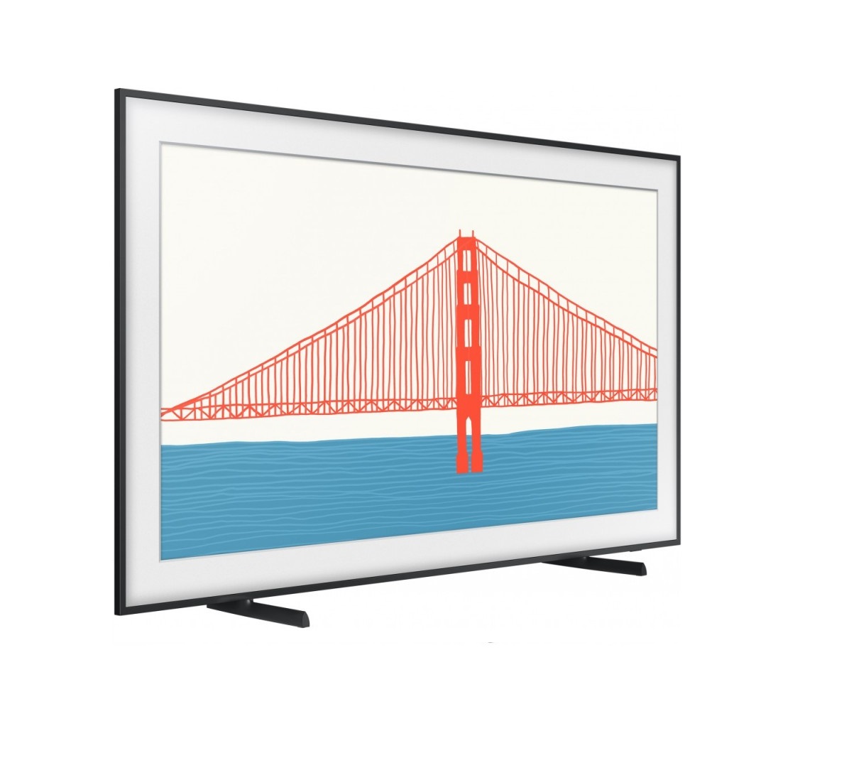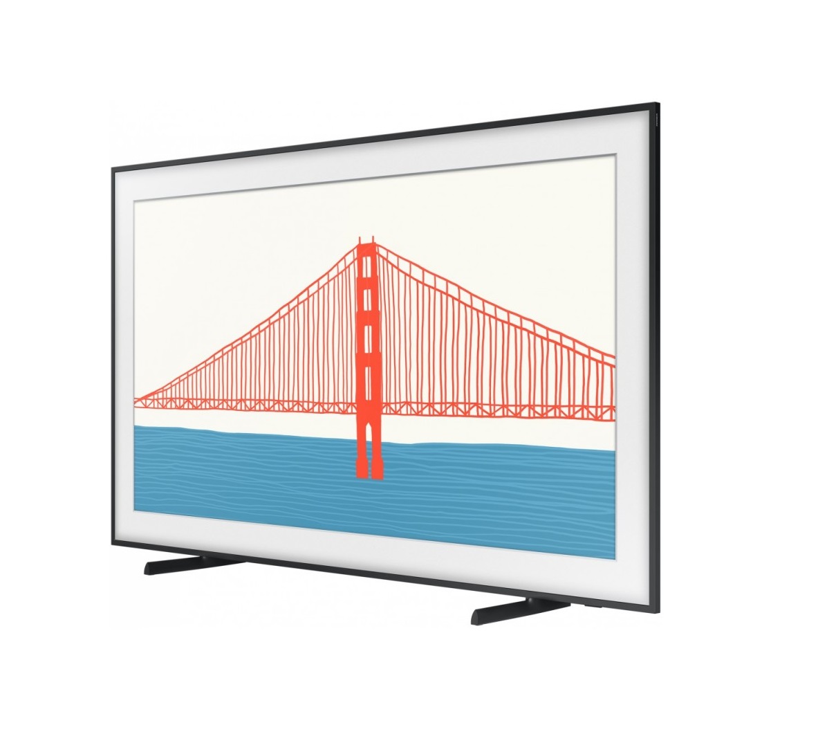 فریم و قالب دور آن صرف نظر از این که بسیار نازک و ظریف می باشد، به طرزی بسیار نوین طراحی شده است که شبیه فریم تابلوهای هنری می باشد. به قدری مسطح است که در صورت نصب روی دیوار، بدون هیچ فاصله ای با دیوار روی آن منطبق می شود. انگار که یک تابلوی هنری را به دیوار وصل کرده باشید. همراه آن یک پایه ی دیواری مختص خودش وجود دارد تا بتواند آن را محکم روی دیوار نگه دارد. حتی براکت آن قابلیت چرخش و انعطاف دارد تا بتوانید زاویه ی آن را آن گونه که فکر می کنید درست و مناسب است، تنظیم کنید.