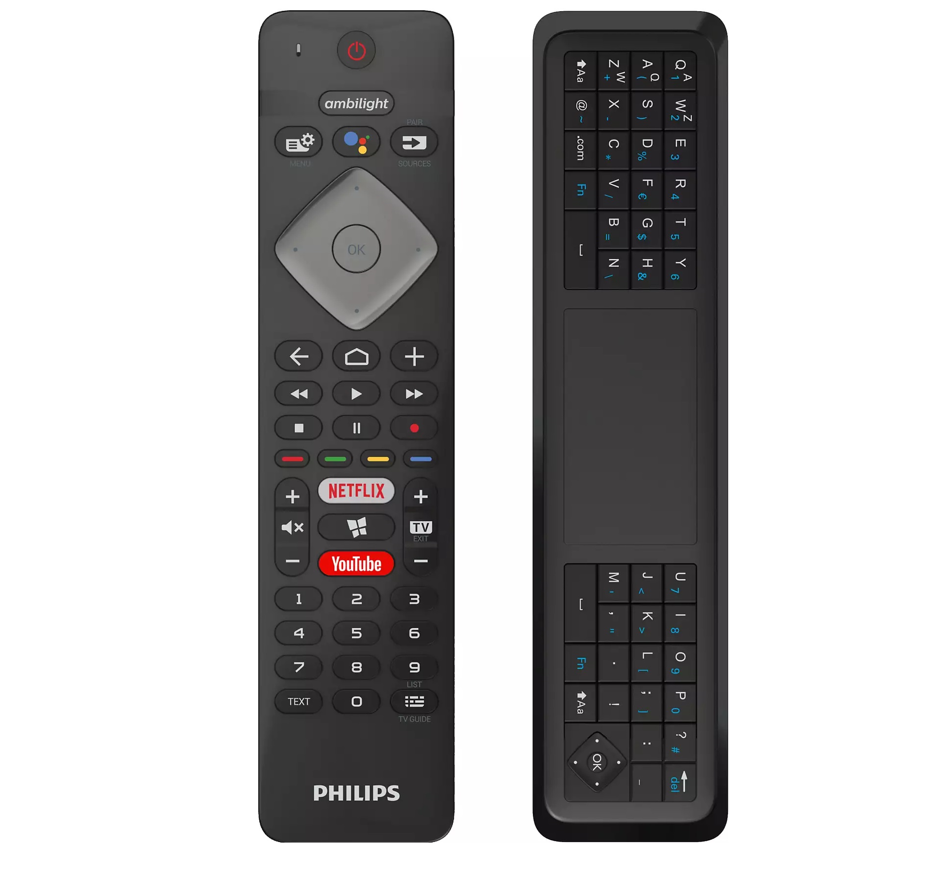 فیلیپس همراه این تلویزیون ریموت خیلی منحصر به فردی را ارائه میدهد. این ریموت دارای دکمه میکروفون برای ضبط صدا است. از کلیدهای میانبر برنامهها برای دسترسی سریع به آنها میتوانید استفاده کنید. این ریموت شگفت انگیز دارای صفحه کلید با چیدمان معروف QWERTY است که ورود متن را خیلی آسان میکند. با در اختیار داشتن این ریموت کنترل، مدیریت تلویزیون خیلی آسان خواهد بود. با همهی اینها شما میتوانید از دستیار گوگل استفاده کنید. تلویزیون فیلیپس 65PUT7374 به لطف برخورداری از دستیار گوگل به شما اجازه میدهد همه چیز را از طریق صدای خود کنترل کنید. برای استفاده از دستیار گوگل لازم است کلید مربوط به این دستیار را در ریموت کنترل فشار دهید. مرحله بعدی این است که عبارت Ok Google را بیان کنید و آنچه را که میخواهید بگویید. میتوانید از تلویزیون خود بخواهید فیلم دلخواهتان را در Netflix به نمایش بگذارد. میتوانید از دستیار گوگل برای پیدا کردن برنامه مورد نظرتان در گوگل پلی استفاده کنید. حتی میتوانید از این دستیار برای مدیریت سایر دستگاههای سازگار متصل به تلویزیون استفاده کنید.