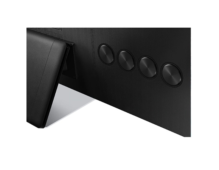 برای هماهنگی با حاشیهها در تلویزیون 65QN900B از رنگ نقرهای برای بخش جلویی پایه تخت استفاده شده تا ظاهری متفاوت و شیک را داشته باشد. این پایه از طریق یک بخش متصل به قسمت پنل پشت تلویزیون محکم میشود. نکتهای که در طراحی بخش پنل تلویزیون نئوکیولد سامسونگ وجود دارد عدم وجود هیچ گونه درگاه و بخش ارتباطی روی بدنه است که بیشترین عامل در ضخامت کم بدنه را شامل میشود.