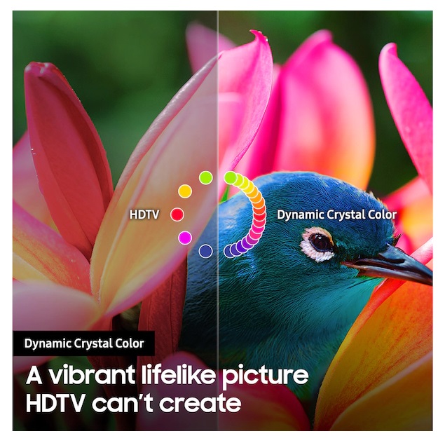 قابلیت Dynamic Crystal Color یا محدوده طیف رنگی در تلویزیون سامسونگ 065RU800 به معنای قدرت تشخیص رنگ و تفکیک آن ها به دسته بندی متنوع تر بسیار زیاد است. به این ترتیب هیچ جزئیاتی از چشم شما دور نمی ماند برای مثال در صحنههایی مانند غروب خورشید که کل صحنه با رنگ های بسیار نزدیک، مثلا انواع طیف های رنگ قرمز، پوشیده می شود، شما می توانید تمامی رنگ ها و طیف ها را به صورت کاملا قابل تمایز مشاهده کنید. قابلیت Dynamic Crystal Color برای افزایش دادن رنگ و گستره ی رنگ تصاویر به کار رفته و طیف رنگی تصاویر را افزایش می دهد، تا واقعی تر و زنده تر دیده شوند. این تکنولوژی یک سطح بالاتر از PurColor قرار می گیرد و با افزایش طیف رنگ قابل نمایش در تلویزیون، امکان خلق تصاویری بسیار واقعی تر و رنگ هایی زنده تر را فراهم می کند.