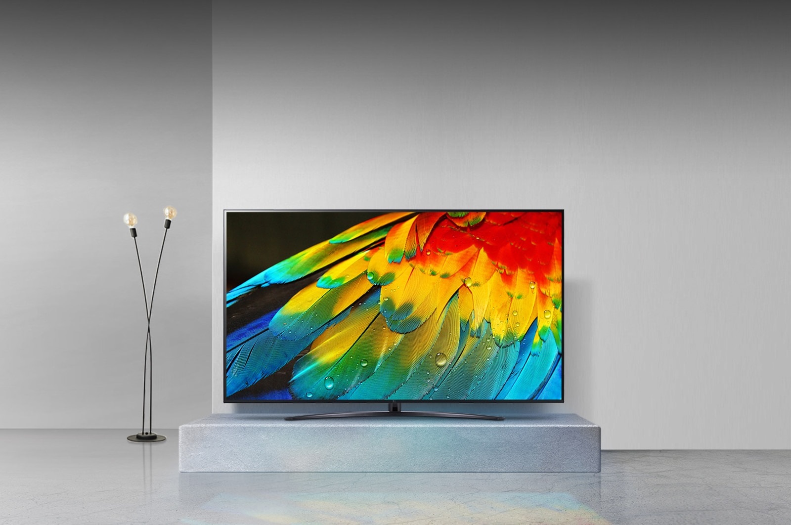 پیاده سازی نوینترین متدهای زیبایی شناختی در طراحی تلویزیونهای نانوسل ال جی موجب شده است که نه تنها از نظر کیفیت تصویر بلکه دیزاین ظاهری در کانون توجه خریداران قرار گیرند. 75NANO816 به عنوان یکی از جدیدترین تولیدات این برند دارای ظاهری زیبا و ارتقاء یافته است. مینیمالیسم یا ساده گرایی با به حداقل رساندن اجزای بصری در طراحی این تلویزیون هویداست. ضخامت فریم در سه طرف نمایشگر تلویزیون کاهش یافته است تا زیبایی ظاهری به حداکثر برسد. جالب اینجاست که کاهش ضخامت فریم در بهبود تجربهی بصری نیز موثر واقع میشود چرا که به بیننده امکان میدهد بدون حواس پرتی به آنچه در اطراف است از ظرفیت حداکثری صفحه نمایش برای تماشای محتوای مورد علاقهی خود استفاده کند. تلویزیون ال جی 75NANO816 همچنین دارای بدنهای باریک با ضخامتی تنها در حدود 44.2 میلیمتر است. کاهش ضخامت پنل ظرافت آن را بشدت افزایش داده است ضمن اینکه براحتی و به صورت یکپارچه روی دیوار قرار میگیرد. برای اتصال تلویزیون به دیوار به پایهی دیواری نیاز خواهد که باید به صورت جداگانه خریداری شود. در صورت نصب تلویزیون روی دیوار نه تنها دکوراسیونی مدرن و هنری خواهید داشت بلکه قادر هستید فضای بیشتری را برای قرارگیری سایر لوازم آزاد کنید. در کنار همهی اینها باید گفت این تلویزیون دارای پایهی هلالی منحصربهفردی است که حتم داریم اکثر کاربران را از نصب آن روی دیوار منصرف میسازد. پایهی هلالی شکل به بدنه زیبایی خاصی بخشیده است. این پایه توسط یک بخش باریکتر و از طریق پیچ اتصال پایه به بخش مرکزی پنل پشتی فیکس شده و به صورت بسیار کارآمد وزن بدنه را روی خود نگه میدارد. جالب اینجاست که در پشت پایه میتوان کابلها را به صورت یکجا مدیریت کرد تا بهم ریختگی در اطراف تلویزیون به حداقل برسد و نمای مینیمالیستی آن تکمیل شود.