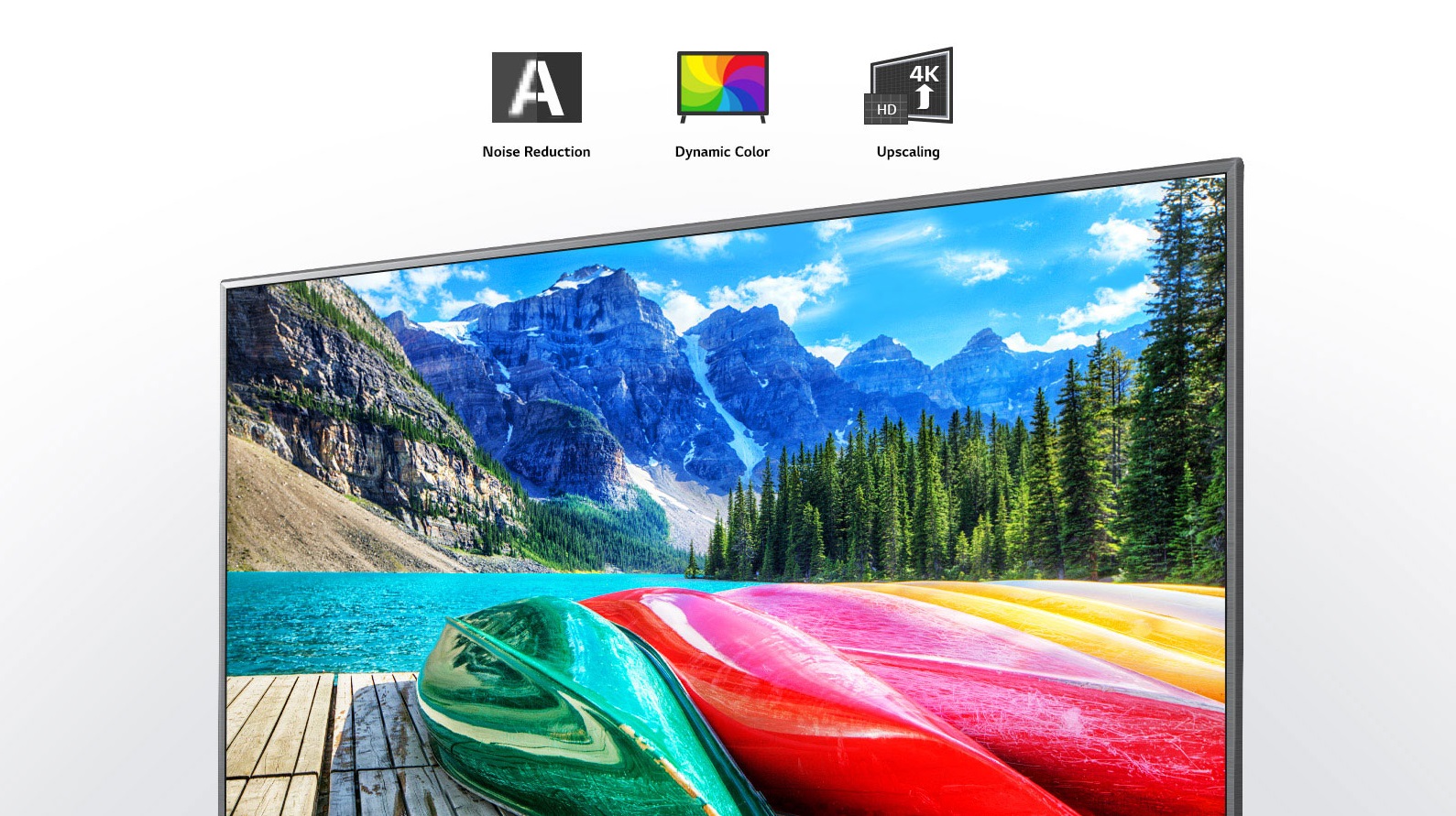 یک پردازنده چهار هسته ای سریع و دقیق، نویز را حذف می کند و رنگ و کنتراست پویا تر را ایجاد می کند. این تلویزیون تصاویر و محتوای با وضوح کم را پس از پردازش توسط یک پردازنده ۴ هسته ای، با مقیاس بزرگ و تصاویر نزدیک به کیفیت ۴K به نمایش می گذارد. فیلمهای اکشن یا بازیهای فوتبال که دارای سرعت بالایی هستند توسط این واحد اسکن شده و نویز و تاری ناشی از سرعت بالا در آنها از بین میرود و به جای آن با کیفیت و وضوح بالایی میتوانید به تماشای علاقهمندیهایتان بنشینید.