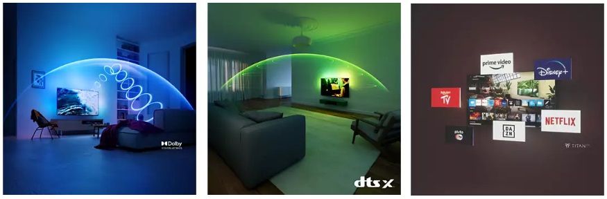 سازگاری با Dolby Atmos و DTS:X صدای این تلویزیون را در هر اتاقی به سطح دیگری میبرد. جدیدترین فیلمها، جدیدترین بازیها، بزرگترین رویدادهای ورزشی: با جلوههای صوتی که در فضای بالا و اطراف شما قرار گرفتهاند، احساس خواهید کرد که درست در وسط صحنه هستید.