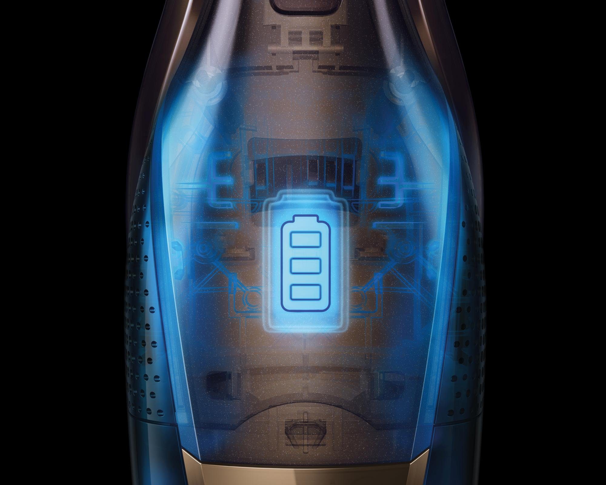 وقتی قسمت کوچک جارو شارژی بر روی دسته میباشد و با نازل کف محیط را تمیز نمایید 180 درجه چرخش میدهد و میتواند هر قسمت را به صورت کامل جارو بزند . پایه مبل ها و قسمت زیر تخت ها و زیر کابینت ها صعب العبور هستند و دسته جاروبرقی به صورت کامل خم میشود تا اسان نفوذ کند و کف را جارو بزند . جارو را از دسته جدا میکنید و هر گرد و غبار را جمع اوری میکند و میتوانید داخل ماشین و یا هر قسمتی را تمیز نمایید .