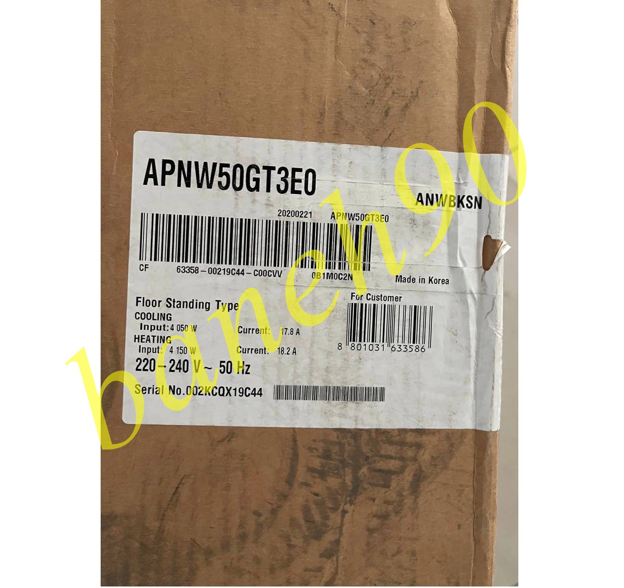 جریان هوای قدرتمند کولر گازی ایستاده 50000 مدل APUW50GT3E0