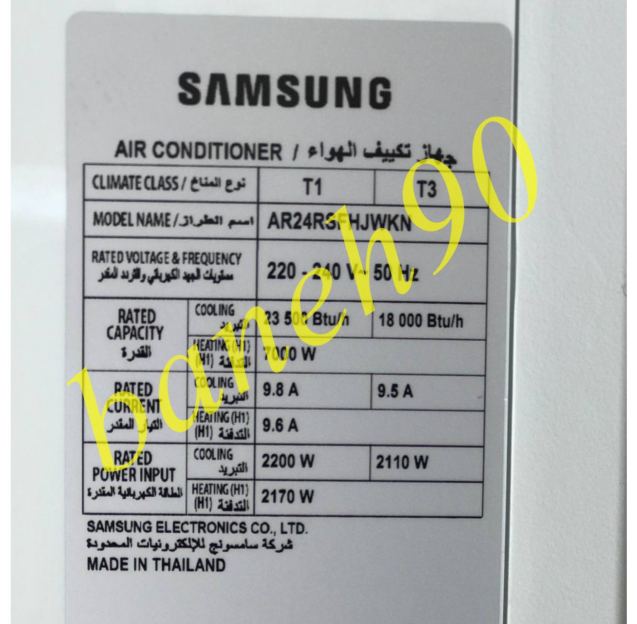 امپر مصرفی در حالت سرمایش | 9.5 آمپر الی 9.8 آمپر |