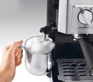 یک نازل در قسمت چپ دستگاه قرار دارد که از آن بخار خارج میشود. نازل بخار، با چرخاندن دکمهی ولومی به سمت چپ و قراردادن آن روی علامت بخار، آماده به کار خواهد شد. با چرخاندن دکمه دیگری که در کنارهی دستگاه قرار دارد بخار آب از نازل خارج خواهد شد. برای تهیهی کف شیر کافی است این نازل را در لیوان شیر قرار دهید تا بهسرعت کف شیر آماده شود. با استفاده از کف شیر میتوان کاپوچینو نیز تهیه کرد.