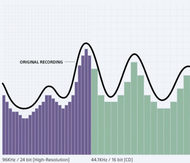 High-Resolution Audio با تبدیل صدای آنالوگ به دیجیتال با سرعت بالاتر و دقیق تر از CD کار می کند. High-Resolution Audio می تواند صدا را با سرعت بیشتر از 24 بیت / 96 هرتز نمونه برداری کند، جزئیات و ظرافت های بیشتری را ضبط کند و در نتیجه موسیقی به همان اندازه واقعی باشد.