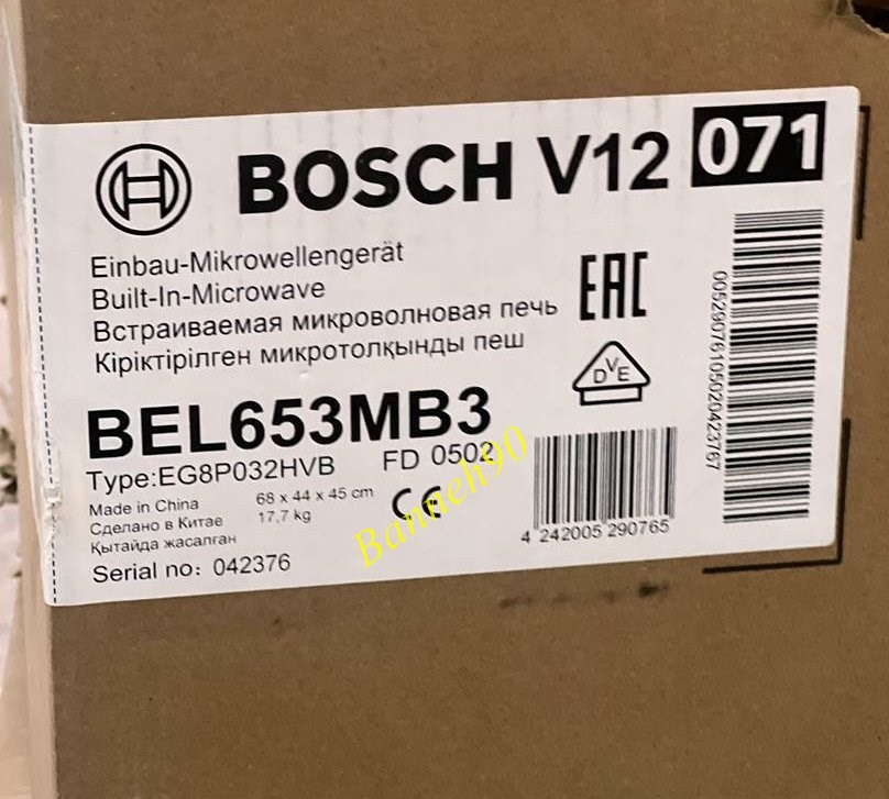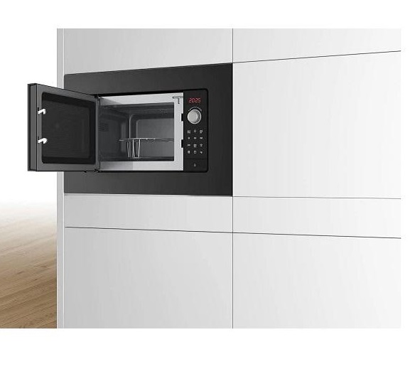 مایکروویو توکار بوش BOSCH مدل BEL653MB3 وسیله ای با رنگ مشکی و طراحی توکار بوده که جلوه منحصر به فردی به آشپزخانه شما میبخشد . لوازم توکار مناسب برای افرادیست که یکدست بودن آشپزخانه برایشان اهمیت ویژه ای دارد. ظرفیت مایکروویو بوش 25 لیتر بوده و حجم مناسبی از مواد غذایی را درون آن میتوان داغ و طبخ نمود. این دستگاه دارای 8 برنامه خودکار بوده که متناسب با نوع عملکرد و مواد غذایی میتوانید آن را تنظیم نمایید. قابلیت گریل در مایکروویو 653 موجب حرارت از بالا به مواد غذایی میگردد. توسط 4 برنامه یخ زدایی میتوانید متناسب با نوع غذا، عملیات یخ زدایی را انجام داد. توان این مایکروویو قابل تنظیم در پنج سطح 90، 180، 360، 600 و 900 وات میباشد که توسط پنل لمسی میتوان تنظیم نمود. توسط نمایشگر دیجیتال مدت زمان باقیمانده از پخت نمایش داده میشود. مایکروویو توکار بوش قابلیت ست شدن با اسپرسوساز های توکار و فر های توکار بوش را دارد.