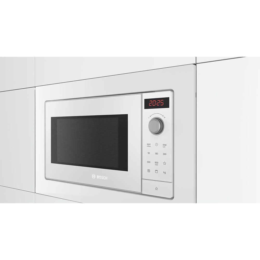 مایکروویو توکار بوش BOSCH مدل BEL653MW3 وسیله ای با ترکیب رنگ مشکی و استیل و طراحی توکار بوده که جلوه منحصر به فردی به آشپزخانه شما میبخشد . لوازم توکار مناسب برای افرادیست که یکدست بودن آشپزخانه برایشان اهمیت ویژه ای دارد. ظرفیت مایکروویو بوش 25 لیتر بوده و حجم مناسبی از مواد غذایی را درون آن میتوان داغ و طبخ نمود. این دستگاه دارای 8 برنامه خودکار بوده که متناسب با نوع عملکرد و مواد غذایی میتوانید آن را تنظیم نمایید. قابلیت گریل در مایکروویو 653 موجب حرارت از بالا به مواد غذایی میگردد. توسط 4 برنامه یخ زدایی میتوانید متناسب با نوع غذا، عملیات یخ زدایی را انجام داد. توان این مایکروویو قابل تنظیم در پنج سطح 90، 180، 360، 600 و 900 وات میباشد که توسط پنل لمسی میتوان تنظیم نمود. توسط نمایشگر دیجیتال مدت زمان باقیمانده از پخت نمایش داده میشود. مایکروویو توکار بوش قابلیت ست شدن با اسپرسوساز های توکار و فر های توکار بوش را دارد.