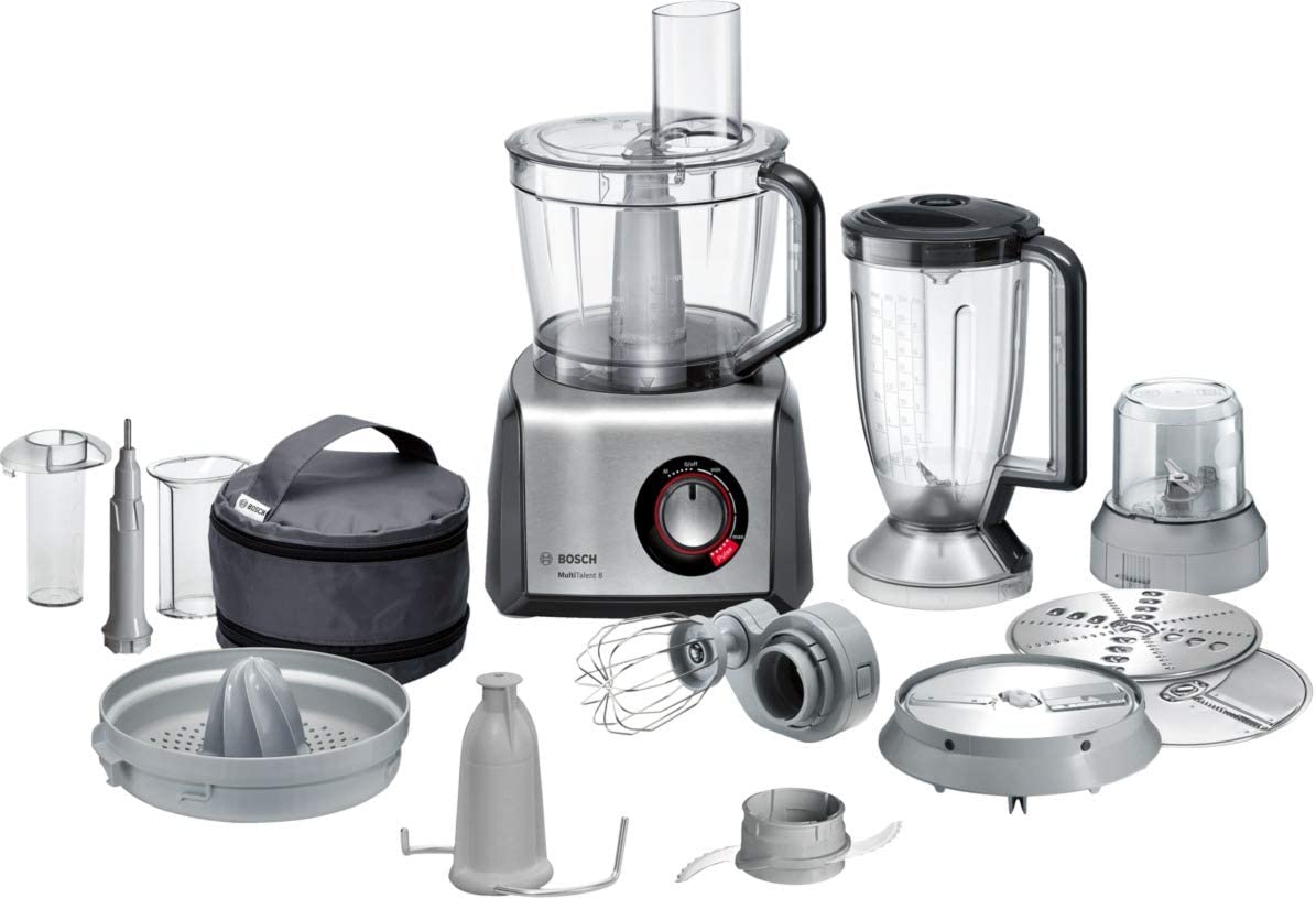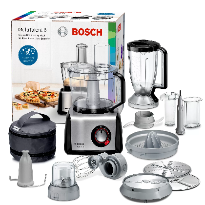 غذاساز بوش مدل 812M853 با عملکرد چند گانه بیشتر نیازهای شما را در آشپزخانه برآورده می کند. دارای ظرف غذاساز، پارچ مخلوط کن پلاستیکی با ظرفیت 1.5 لیتر،قطعه آب مرکبات گیری، دو تیغه استیل برای رنده ریز و درشت، دو تیغه برای ورقه کردن، یک تیغه برای خلال کردن، خمیر زن پلاستیکی،دیسک پلاستیکی برای تخم مرغ و خامه می باشد. مجهز به عملکرد لحظه ای و دارای ولوم چرخشی برای تنظیم سرعت می باشد.
