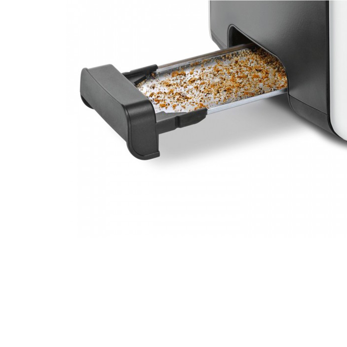 همچنین در هنگام قرار دادن نان درون درگاه توستر، بهطور خودکار نان در مرکز این فضا جایگذاری میشود تا گرما بهطور مساوی و همهجانبه بر روی سطوح مختلف نان اعمال شود. یک سینی متحرک در قسمت زیرین توستر نیزپیشبینی شده تا با جمع کردن خردههای نان، نظافت دستگاه را آسان کند.