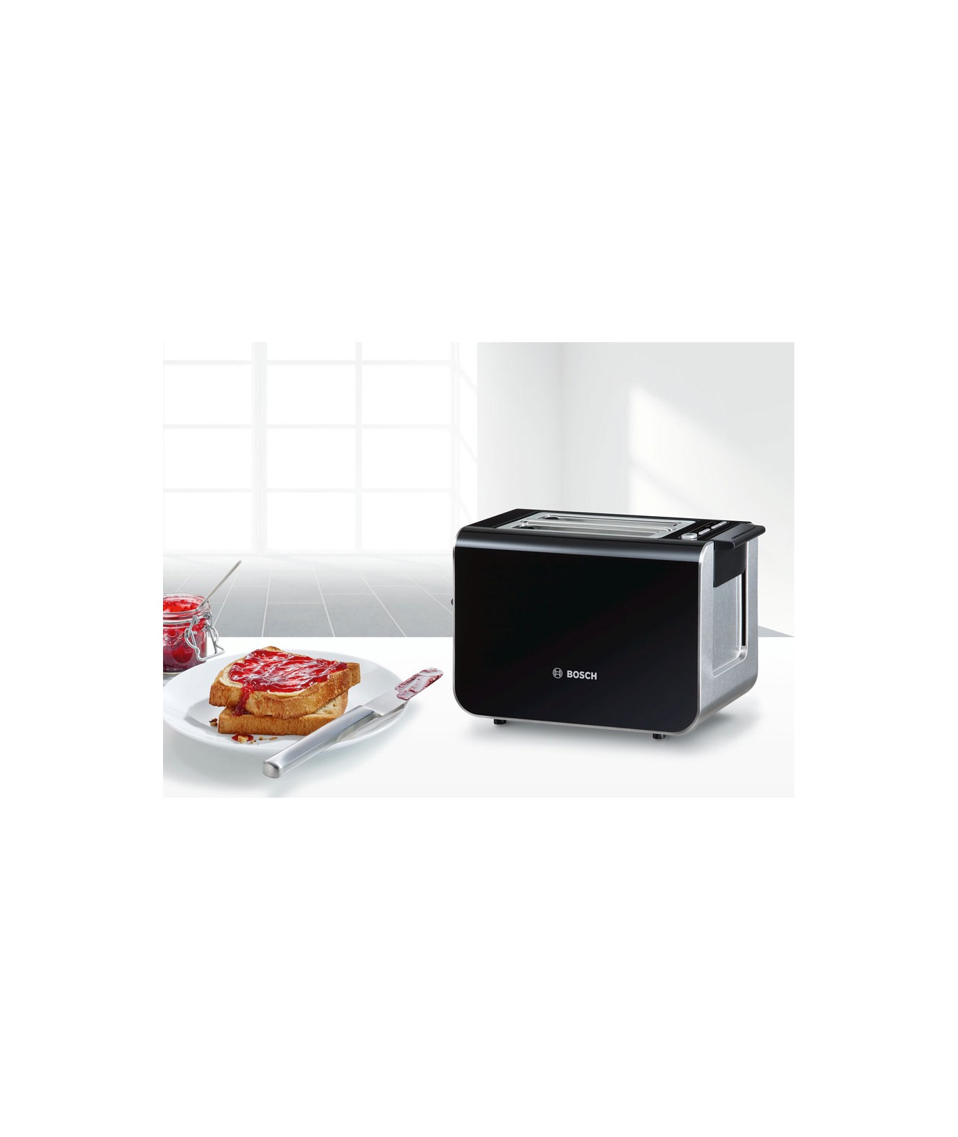 توستر بوش مدل tat8613 طراحی شرکت بوش آلمان و ساخت کشور چین می باشد و با دارا بودن ظاهری بسیار زیبا و شیک چشم هر مخاطبی را به خود جلب کرده است. توستر بوش مدل TAT8613 دارای دو شیار قرارگیری نان دارد. پس از قرار گیری نان ها، از روی دکمه های لمسی و با کمک نشانگرهای نورانی روی دستگاه، میزان برشتگی تنظیم شده و دستگیره جلویی به پایین کشیده می شود تا عملیات برشته کردن نان آغاز شود.