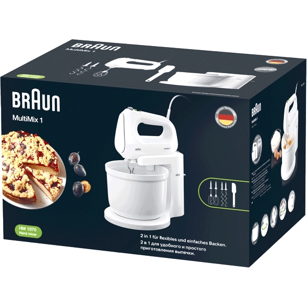 همزن کاسه دار براون مدل HM1070 ، از ضروریترین وسایل آشپزخانه از کمپانی براون است. جنس بدنه همزن کاسه دار براون پلاستیکی و مستحکم می باشد. موتور این دستگاه با قدرت 400 وات ساخته شده است. با استفاده از این همزن قدرتمند میتوانید مایع اولیه شیرینی، کیک و … را بدون زحمت و به آسانی آماده کنید.