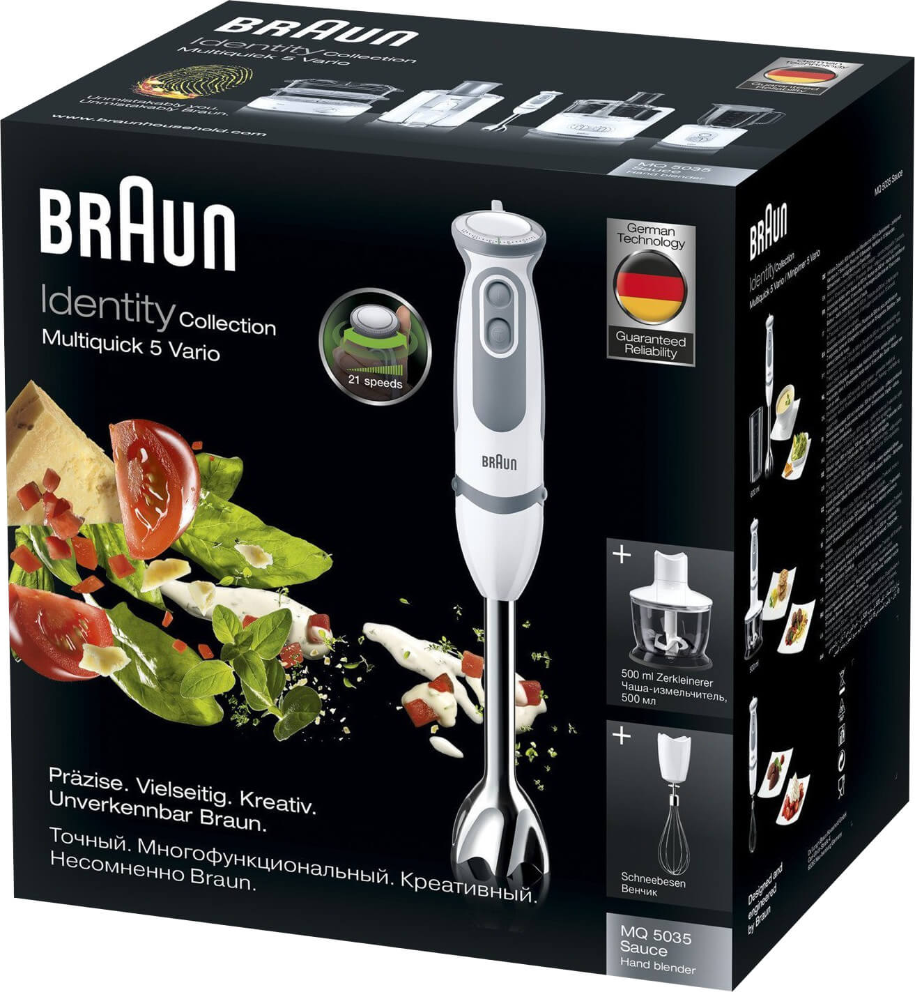 گوشت کوب برقی براون مدل MQ5245،با بهره گیری از موتور قدرتمند 1000 وات، امکان آماده سازی طیف وسیعی از غذاها را به سرعت فراهم می کند. از حداکثر دقت و قدرت در کف دست لذت ببرید! این مدل به صورت ارگونومیک طراحی شده، بطوریکه قسمت بالا، باریکتر می باشد و سرعت ها به سادگی و بدون وقفه تنها با انگشت شست شما تنظیم می شوند.این گوشت کوب برقی می تواند در 21 سطح مختلف سرعت داشته باشد به علاوه بدنه ی آن از جنس پلاستیک مقاوم است و پایه و تیغه ها و میله آن از جنس استیل ضد زنگ می باشد .