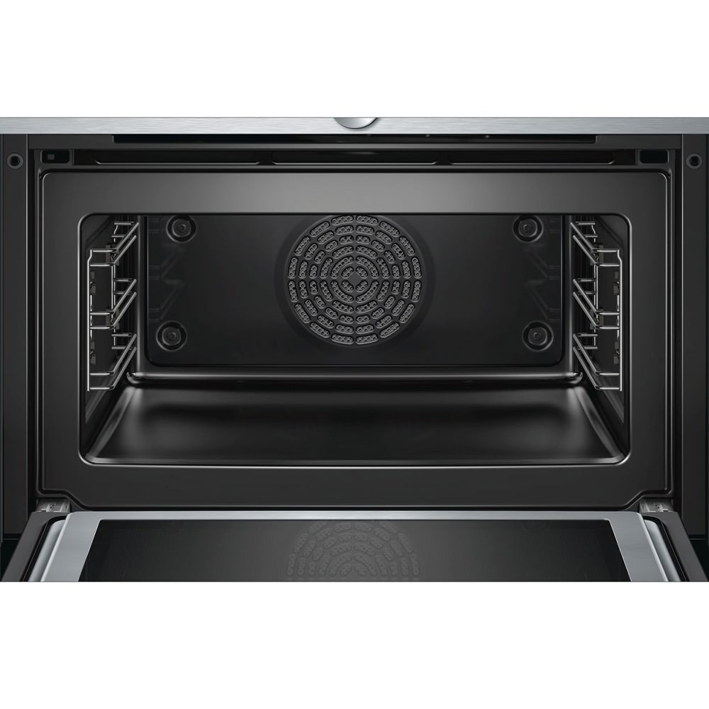 فر توکار بوش مدل CMG633BS1 یکی از محصولات فوق العاده با کیفیت و کارای شرکت بوش می باشد. همانطور که از نام این مدل پیدا است، این فر به صورت توکار می باشد. ابعاد آن 60 در 45 سانتیمیتر است و قابلیت های منحصر به فردی را دارد. در این مایکروفر درب به آسانی باز و بسته می شود و به لطف تمیز کردن اتوماتیک ان لازم نیست که آن را به صورت منوال Manual تمیز کرد. این مایکروفر هوا را در هر سطحی از درجه حرارت به صورت چند بعدی اعمال می کند و می تواند انواعی از غذا ها را آماده کند. قفسه ها در آن به صورت تلسکوپی بوده و به راحتی روی غلطک جلو و عقب می روند. حجم این مایکروفر توکار بوش برابر با 45 لیتر است که در میان مایکروفر های موجود در بازار بیشترین حجم را دارد. این مایکروفر 13 عملکرد را دارد و از ذوب کردن Defrost گرفته تا درست کردن پیتزا و یا کباب کردن و یا نیم پز کردن غذا همه و همه از قابلیت های منحصر به فرد آن می باشد. این مایکروفر دارای 5 طبقه و یا قفسه ی باشد و به نظر می رسد وجود آن در هر منزلی ضروری است و اشپزی کاملا اتوماتیکی را فراهم می کند.