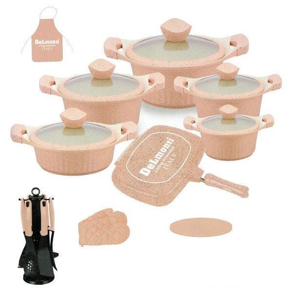 سرویس قابلمه گرانیتی 22 پارچه دسته چوبی دلمونتی مدل DL1150 از جنس گرانیت بسیار سخت است که علاوه بر مقاومت بالایی که دارد نچسپ بوده و مانع چسپیدن مواد غذایی می شود.جنس گرانیت به گونه ای است که به راحتی می توان آن را شست و تمیز کرد و نسبت به تفلون هنگام شستن کنده نمی شود و حتی با یک پارچه خشک هم می توان آن را تمیز کرد.