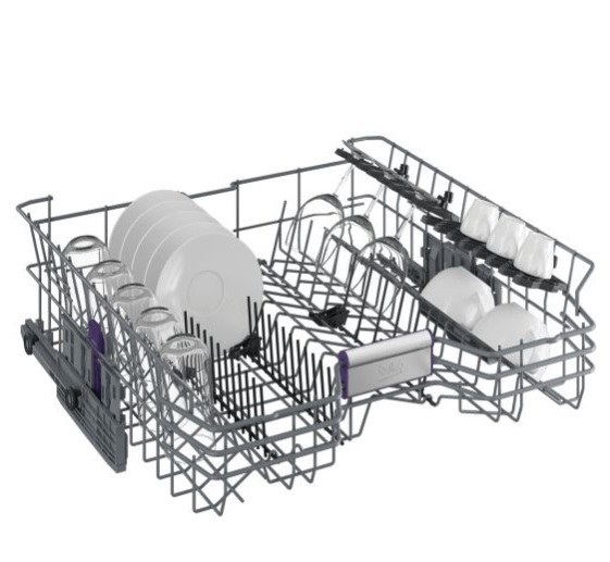 نوع و تعداد طبقات | سبد 1 : سبد مخصوص ظروف بزرگ قابلمه و تابه با قابلیت جمع شوندگی چنگکها جهت استفاده ظروف بزرگتر سبد 2 : سبد مخصوص پیش دستی و لیوانها با قابلیت تنظیم ارتفاع به صورت آسانسوری در 3 حالت برای استفاده ظروف بزرگتر در سبد پایینی و جمع شوندگی چنگکها برای ظروف بزرگتر سبد 3 : مخصوص قاشق چنگال و کاردها در طبقه بالا سبد 4 : سبد مخصوص قاشق چنگال متحرک |