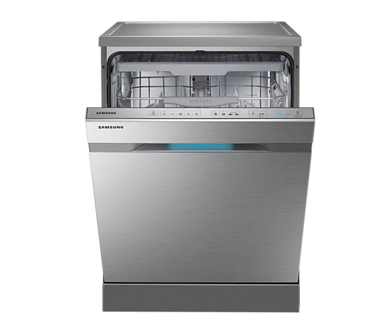 DW60K8550FS یکی از ماشینهای ظرفشویی 14 نفره سامسونگ است که از فناوری ها و ویژگی های مختلفی برخوردار است. این ماشین ظرفشویی دارای 5 برنامه شستشو است و شما با توجه به حجم و میزان آلودگی ظروف میتوانید بهترین برنامه را جهت شستشوی آنها انتخاب کنید. طراحی ماشین ظرفشویی DW60K8550FS بسیار زیباست و جنس آن از استیل ضد زنگ است و به صفحه نمایش LED مجهز شده است. این ماشین ظرفشویی دارای سه سبد با قابلیت تنظیم ارتفاع است و میتوانید با فشردن دکمه ای ارتفاع سبدها را با توجه به سایز ظروف تنظیم کنید. این ظرفشویی دارای سبد مخصوص ظروف کوچک است و شما میتوانید ظروفی مانند فنجان، قاشق، چنگال و غیره را در این قسمت قرار داده تا به خوبی شسته شوند. ماشین ظرفشویی سامسونگ DW60K8550FS دارای فناوری WaterWall است. این فناوری آب را با شدت و فشار به صورت خطی روی ظروف اسپری میکند و باعث میشود ظروفی که در گوشه ماشین ظرفشویی هم قرار گرفته اند به خوبی شسته شوند. ماشین ظرفشویی 14 نفره DW60K8550FS دارای تکنولوژیZone Booster است و به شما اجازه میدهد ظرف های بسیار کثیف و ظروف کمی آلوده را با دو قسمت شستشوی جداگانه بشویید. این ماشین ظرفشویی دارای قابلیت Half Load است. به این ترتیب نیازی نیست که حتما تمام ظرفیت دستگاه پر شود تا بتوانید آن را روشن کنید. شما میتوانید ماشین ظرفشویی را با نصف ظرفیت نیز روشن کنید تا به شستشوی ظروف بپردازید. به این ترتیب در انرژی و زمان نیز صرفه جویی خواهد شد. در دستگاه به صورت اتوماتیک پس از پایان شستشو باز میشود. این عمل باعث میشود تا بخار و گرمای اضافه ناشی از خشک کردن ظروف به بیرون هدایت شده و ظروف شما کاملا براق و درخشان باشند.