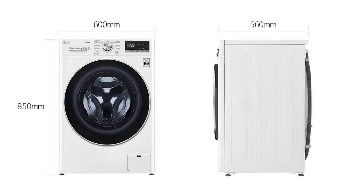 این ماشین علاوه بر افزایش ظرفیت خود نسبت به سایر ماشینهای همنوع خود، ویژگی های دیگری را نیز در خود گنجانده است و آن این است که ضمن اینکه این ماشین به ظرفیت خود افزوده است، به حجم ماشین از لحاظ ابعاد اضافه نشده است. به عبارتی دیگر ال جی تنها با افزایش قطر دیگ لباس، ظرفیت این ماشین را افزایش داده است و در ابعاد ماشین هیچ تغییری ایجاد نشده است. این یعنی اینکه اگر کسانی لباسشویی با ظرفیت کم خریداری کرده و محل نصب آن را در آشپزخانه و یا هر محیط دیگری کابینت کاری نموده اند، برای افزایش ظرفیت ماشین خود نباید نگرانی داشته باشند. زیرا این ماشین از نظر ابعاد با ماشینهای دیگر تفاوتی ندارد و همانگونه که اشاره شد برای افزایش ظرفیت ماشین، قطر دیگ لباسها بیشتر شده است.