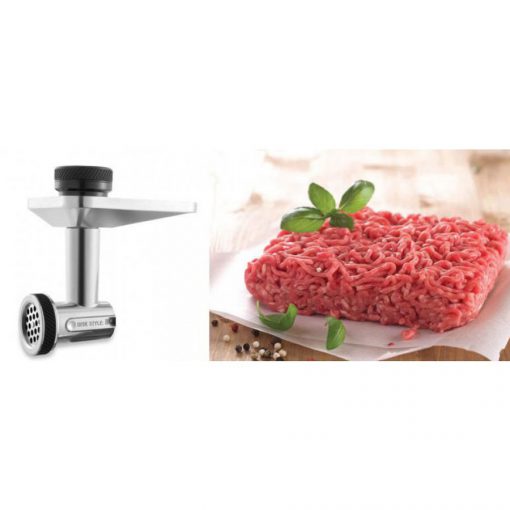 همچنین دارای یک قطعه مخصوص چرخ گوشتبه صورت اختیاری بوده که آن هم دارای جنس عالی بوده و در قسمت جلویی دستگاه نصب می گردد و عملکرد دستگاه را بالاتر می برد تا همزمان بتوان از دوکارایی عالی آن استفاده کرد. به وسیله آن می توان گوشت قرمز یا سفید و یا هر ماده غذایی دیگری را قیمه کرد.