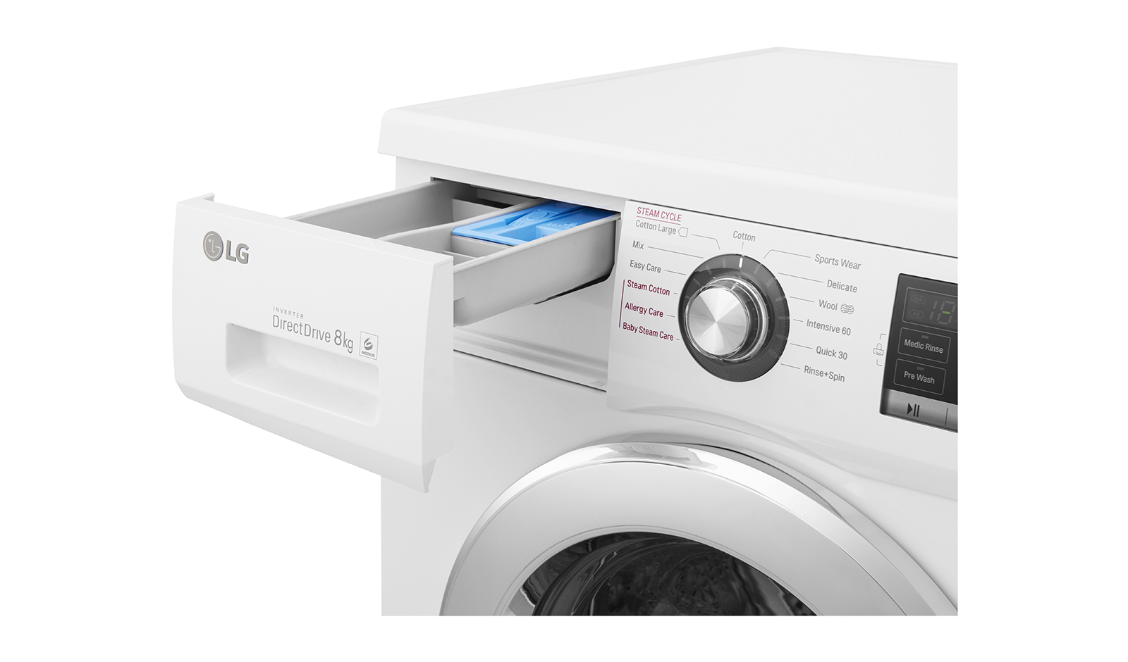 همانطورکه در بخشهای قبلی نیز اشاره کردیم، لباسشویی ال جی مدل J6 دارای ظرفیت 8 کیلوگرمی میباشد از همین رو میتواند از پس خانوادههایی با جمعیت بالا بر بیاید، چرا که درام آن به حدی جا دار است تا بتوان حجم زیادی را در داخل آن قرار داد. با نگاه به قسمت داخلی درام لباسشوییJ6 ال جی متوجه وجود حفرههای دایرهای شکلی خواهید شد که از طریق آنها آب و مواد شوینده به تمامی بخشهای داخلی به راحتی نفوذ میکند. در این میان بد نیست اشاره به سرعت چرخش 1400 دور در دقیقهای لباسشویی ال جی کنیم، به صورتیکه درام آن به ازای هر دقیقه، 1400 دور در میچرخد و در نهایت لباسهایی کاملاً تمیز را تحویل میدهد. حالت دایرهای وار درام در کنار آب و مواد شوینده و همچنین سود بردن از سرعت فوقالعاده بالای چرخش آن همگی در کنار هم یک چرخهی کاملاً لذت بخش و صد البته کاملاً تمیز و پاکیزه را به همراه خود میآورند. قابلیت تمیز کنندگی خودکار درام یکی از مزایای خوبی است که بدون نیاز به دست و تنها به صورت خودکار محوطه داخلی درام را میشوید. همچنین امکان افزودن لباس به لباسشویی در هنگام کارایی آن برای کاربر فراهم میشود. این کار به منظور اضافه کردن لباسهایی که فراموش شدهاند تا داخل لباسشویی قرار بگیرند در نظر گرفته شده است. برای این کار تنها کافیست تابع اضافه کردن آیتم Add Item را فشار دهید و هر نوع لباسی را که میخواهید در داخل درام قرار دهید. از این گذشته وجود برنامه هایی همچون شستشوی سریع مدت زمان لباسشویی را از آنچه که هست بسیار کمتر میکند. برنامهی شروع با تاخیر نیز با تنظیم زمان کارایی لباسشویی حتی در هنگام نبود شما نیز دستگاه شروع به کار میکند. برنامهی پیش شستشو هم همانگونه که از نامش پیداست، با خیساندن لباسها از قبل چرخهی شستشو را راحت میکند. به عبارتی این برنامه برای لباس های بسیار کثیف و روغنی مناسب است که قبل از شروع شستشوی نهایی آنها را در آب گرم می خیساند.
