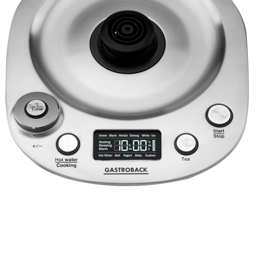 از جمله ویژگی های خاصی که برای چایساز Gastroback مدل 42438 طراحی شده است می توان به تایمر 24 ساعته آن اشاره کرد. با استفاده از این تایمر می توانید ساعت شروع به کار چایساز را بین 1 تا 24 ساعت تنظیم نمایید تا دستگاه در زمان مورد نظر شما شروع به دم آوری چای نماید. برای چای ساز مدل 42438 گاستروبک 6 برنامه مختلف برای تهیه انواع چای طراحی شده است همچنین شما می توانید از 4 برنامه غذایی تعریف شده جهت تهیه غذای کودک، سوپ، مرغ و غیره استفاده نمایید.