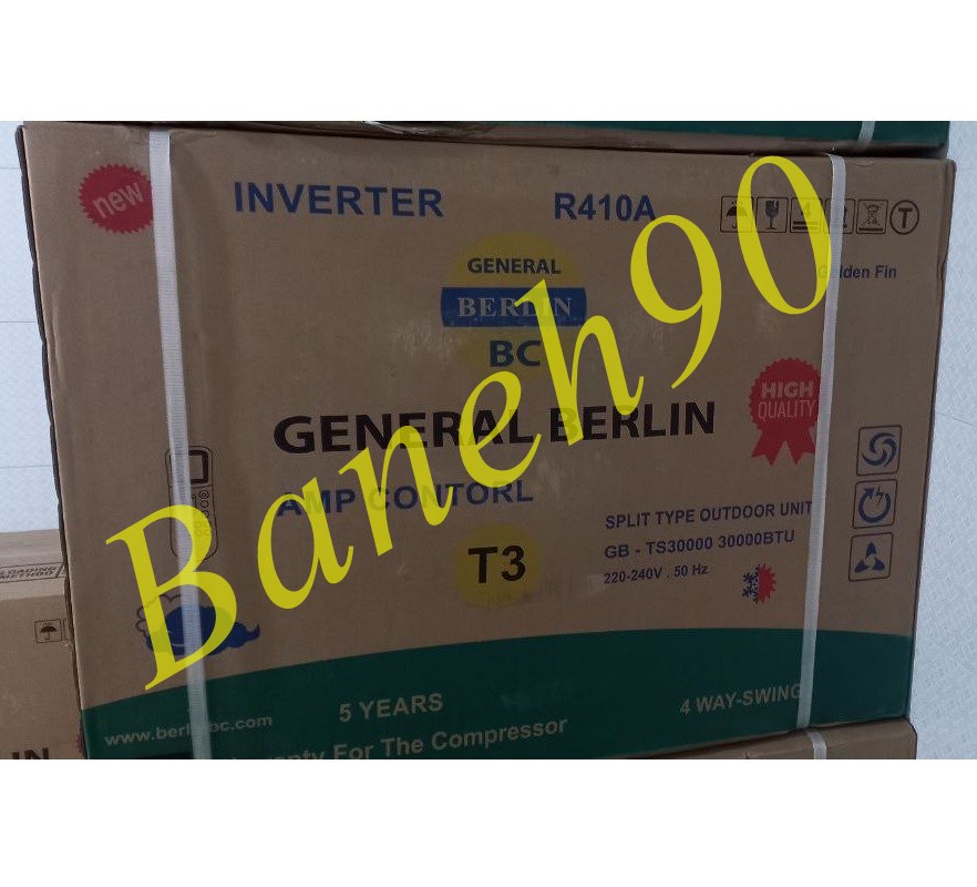 کولر گازی جنرال برلین 30000 سرد و گرم اینورتر کنترل آمپر GB-TS30000 یکی از بهترین کولرهای مارک جنرال برلین است که برای خرید کولر بانه بهترین گزینه از نظر عملکرد، امکانات و کیفیت و همچنین قیمت می باشد.