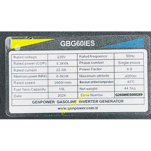 سایر ویژگی های موتور برق جن پاور مدل GBG60IES