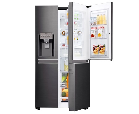 ال جی برای مدیریت و دسترسی سریع به مواد خوراکی و غذایی داخل یخچال از طراحی دور این دور برای برخی از ساید بای سایدهایش کمک گرفته است. این نوع طراحی علاوه بر شیک جلوه دادن دیزاین کلی ساید بای ساید؛ در عین حال نیز سبب میشود تا به راحتی مواد خوراکی مورد نیاز در اختیار قرار بگیرد. در این میان ساید بای ساید ال جی GC-J247CKBZ مجهز به طراحی دور این دور می باشد. در واقع قابلیت درب تو درب به کاربر این امکان را می دهد تا ضروری ترین مواد خوراکی خود را در دسترس و در داخل یخچال قرار دهد و هر زمان که بخواهد در کوتاه ترین زمان ممکن به آنها دسترسی داشته باشد. طراحی دور این دور شامل یک درب مجزا از یخچال می باشد که با باز شدن آن تعداد زیادی از طبقه ها و قفسه ها را مشاهده می کنید. طبقه ها و قفسه ها بر روی درب یخچال طراحی شده اند که به راحتی می توانید میان وعده ها، خوراکی و نوشیدنی های بچه هایتان را در داخل آن ذخیره سازی کنید. همچنین از مزیت های دور این دور ساید بای ساید ال جی این است که دیگر لازم نیست هر بار درب اصلی یخچال را باز و بسته کنید و در نتیجه با این قابلیت از هدر رفتن هوای خنک داخل یخچال جلوگیری میشود.