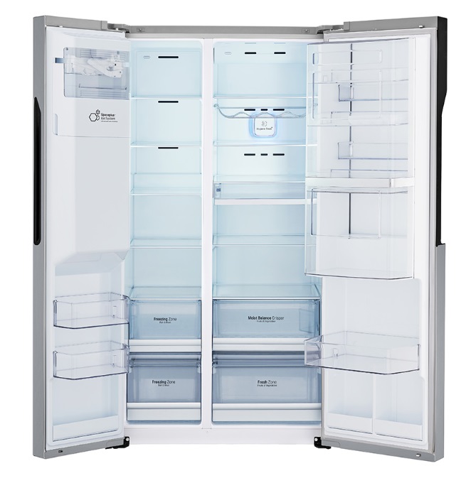 طراحی و ظاهر لوازم آشپزخانه برای خانم ها از اهمیت زیادی برخوردار است. به دلیل استفاده روزانه زیاد از یخچال فریزر، باید محصولی را انتخاب کنید که طراحی و ساخت آن باب میل شما باشد. ال جی با طراحی نوار کوچک به صورت Door in Door، که بر روی یخچال فریزر مشاهده می شود، زیبایی خاصی را به آن بخشیده است. همانطور که می دانید، این یخچال به صورت ساید بای ساید ساخته شده است. شرکت ال جی این یخچال را دو درب تولید کرده و صفحه نمایش و آبسرد کن آن بر روی درب سمت چپ قرار گرفته است. از طریق صفحه نمایش LED می توانید تنظیمات دما و مابقی تنظیمات دیگر را در دست بگیرید. آبسرد کن در هر زمان در دسترس شماست و از طریق محفظه نگهداری یخ که داخل یخچال تعبیه شده، می توان همیشه آب سرد و خنک را در اختیار داشت.