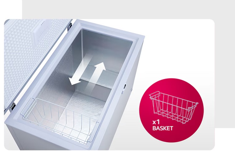سبد قابل جابجایی و کشویی امکان دسترسی سریع به اقلام کوچکتر را فراهم میکند و فضای اضافی برای غذاهای حجیمتر و کالاهای منجمد ایجاد میکند.