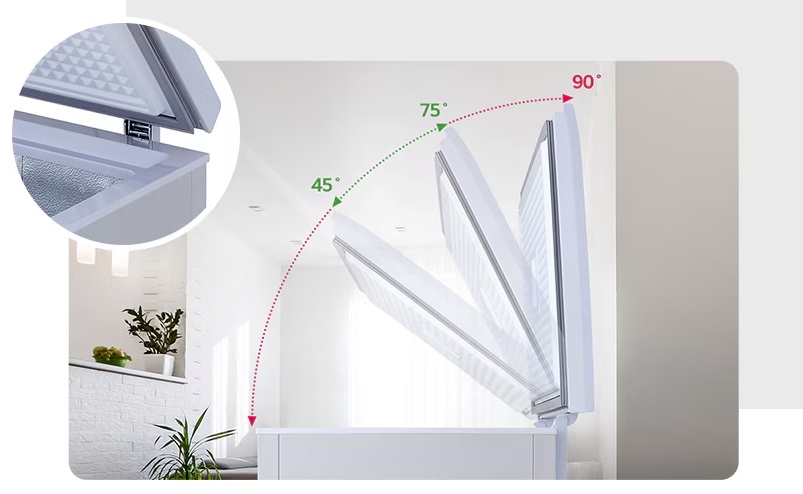 لولا با قابلیت تنظیم که تا ۹۰ درجه باز میشود، میتواند به طور ایمن بین ۴۵ تا ۷۵ درجه نگه داشته شود و برداشتن غذا را آسان کرده و از بسته شدن ناگهانی درب جلوگیری کند.